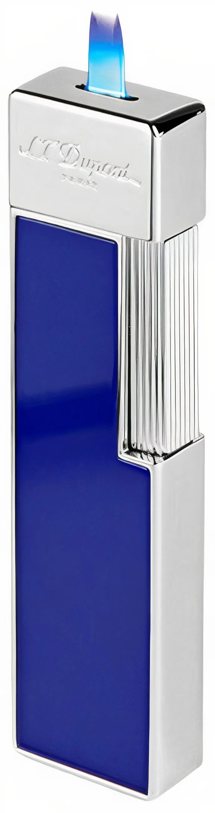 S.T. Dupont Twiggy Feuerzeug Naturlack Blau Chrom verkörpert den Geist der 1960er Jahre mit seiner schlanken Silhouette und ist sowohl zum Anzünden von Kerzen als auch Zigaretten geeignet, was es für Raucher und Nichtraucher gleichermaßen attraktiv macht.