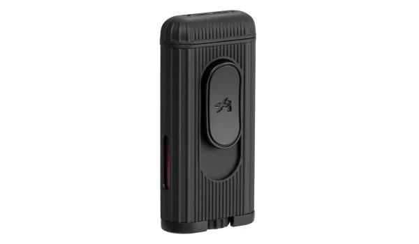 Xikar Jet Feuerzeug Hedron in komplett mattem Schwarz ist die sportlichere Ausführung dieses beliebten Modells. Der vollständig mattschwarze Korpus verleiht dem Feuerzeug einen modernen und dynamischen Look, der besonders ansprechend und zugleich funktional gestaltet ist. Es bietet eine leistungsstarke, windfeste Jetflamme, die sich ideal zum Entzünden von Zigarren eignet. Die Oberfläche ist mit einem strukturierten Linienmuster versehen, das für einen besonders sicheren Griff sorgt. Der Auslöser auf der Vorderseite trägt das Xikar-Logo und lässt sich intuitiv nach unten drücken.