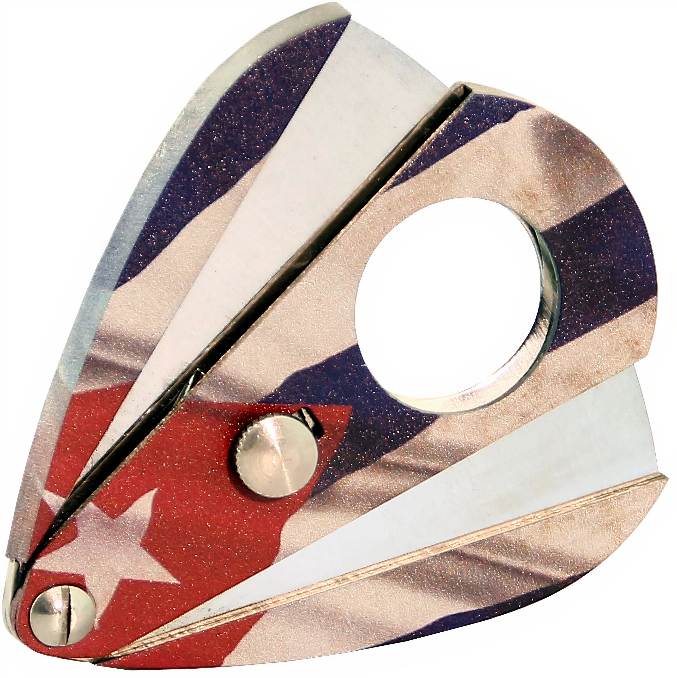 Ein eleganter, tropfenförmiger Zigarrenabschneider mit dem beeindruckenden Motiv der wehenden kubanischen Flagge auf Vorder- und Rückseite. Dieser Abschneider kombiniert stilvolles Design mit höchster Funktionalität und ist ein ideales Accessoire für Liebhaber kubanischer Zigarren.